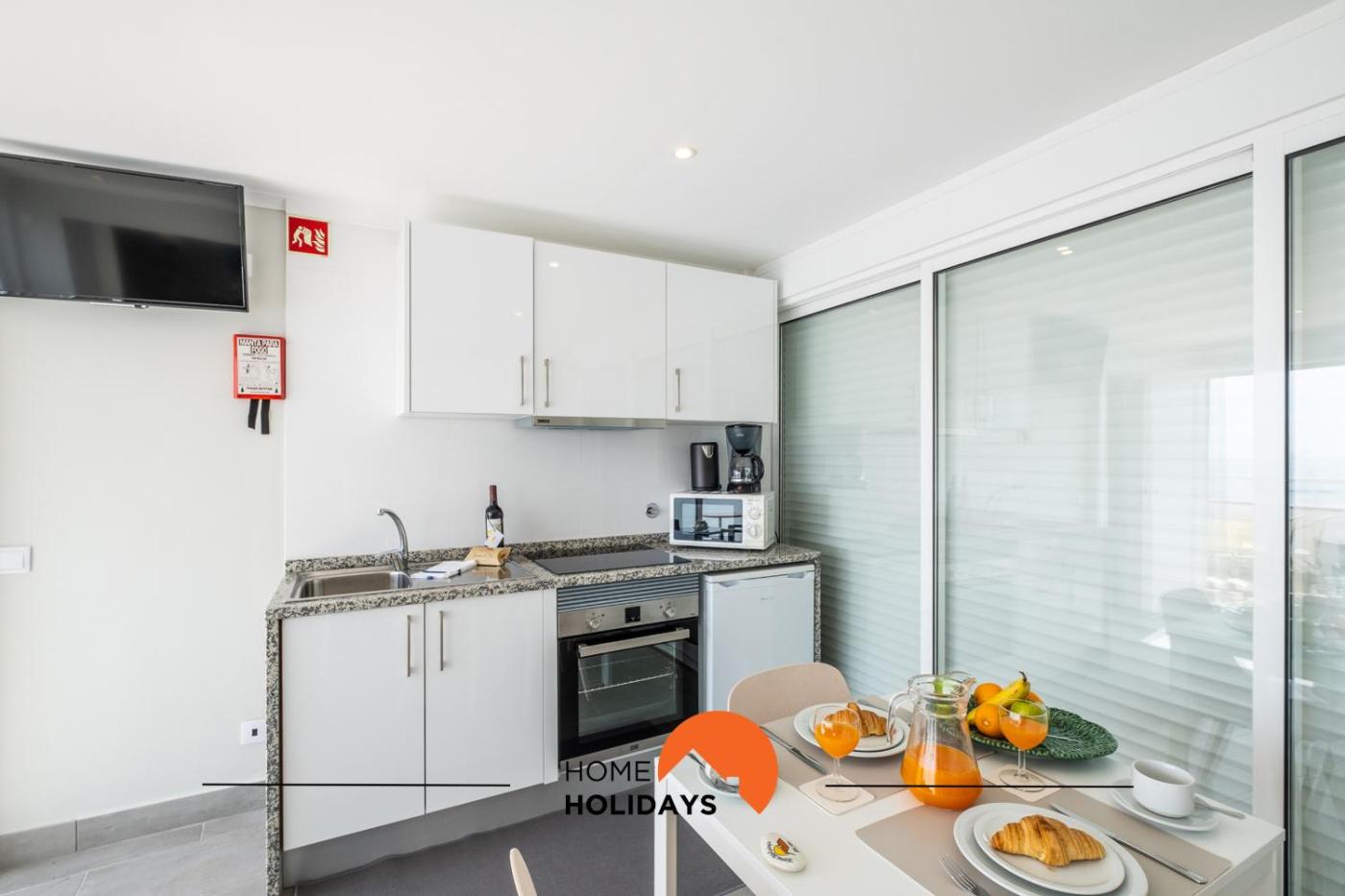 Estúdio com Vista Mar. Guests can make meals in the kitchen that features a stovetop, a refrigerator, kitchenware and an oven. The studio features a washing machine, a tea and coffee maker, a terrace with sea views as well as a private bathroom boasting a shower.