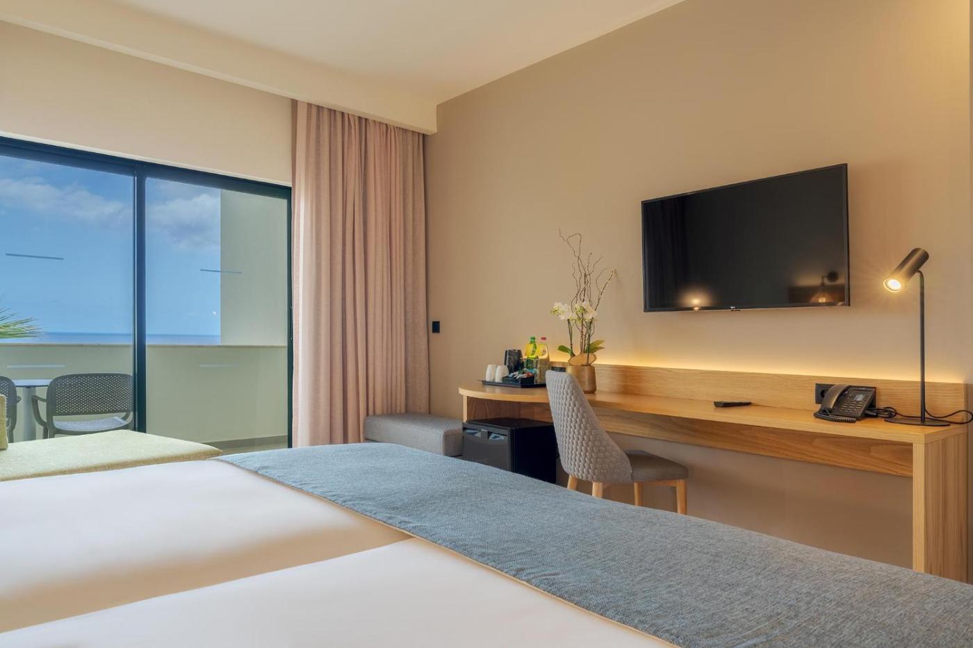 Quarto Duplo Deluxe com Vista Mar. The double room provides a wardrobe, a safe deposit box, as well as a private bathroom boasting a shower and a hairdryer. The spacious air-conditioned double room features a flat-screen TV with cable channels, a minibar, a tea and coffee maker, a seating area as well as sea views. The unit has 1 bed. ;